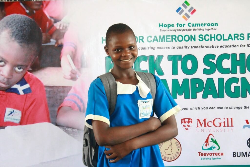The insecurity caused by the crisis made Hilda and her family to flee Wum, in 2017, to a more secure place, in the course of which she lost her father, who was the breadwinner of the family. This loss had devastating financial implications for Hilda’s family as it meant her siblings and her had to drop out of school. After being out of school for so many years, Hilda has reached the age limit for common entrance and First School exams, and so was sent to complete her primary education in Douala where she lives with her aunt. She hopes to become an Electronic Engineer in the future.